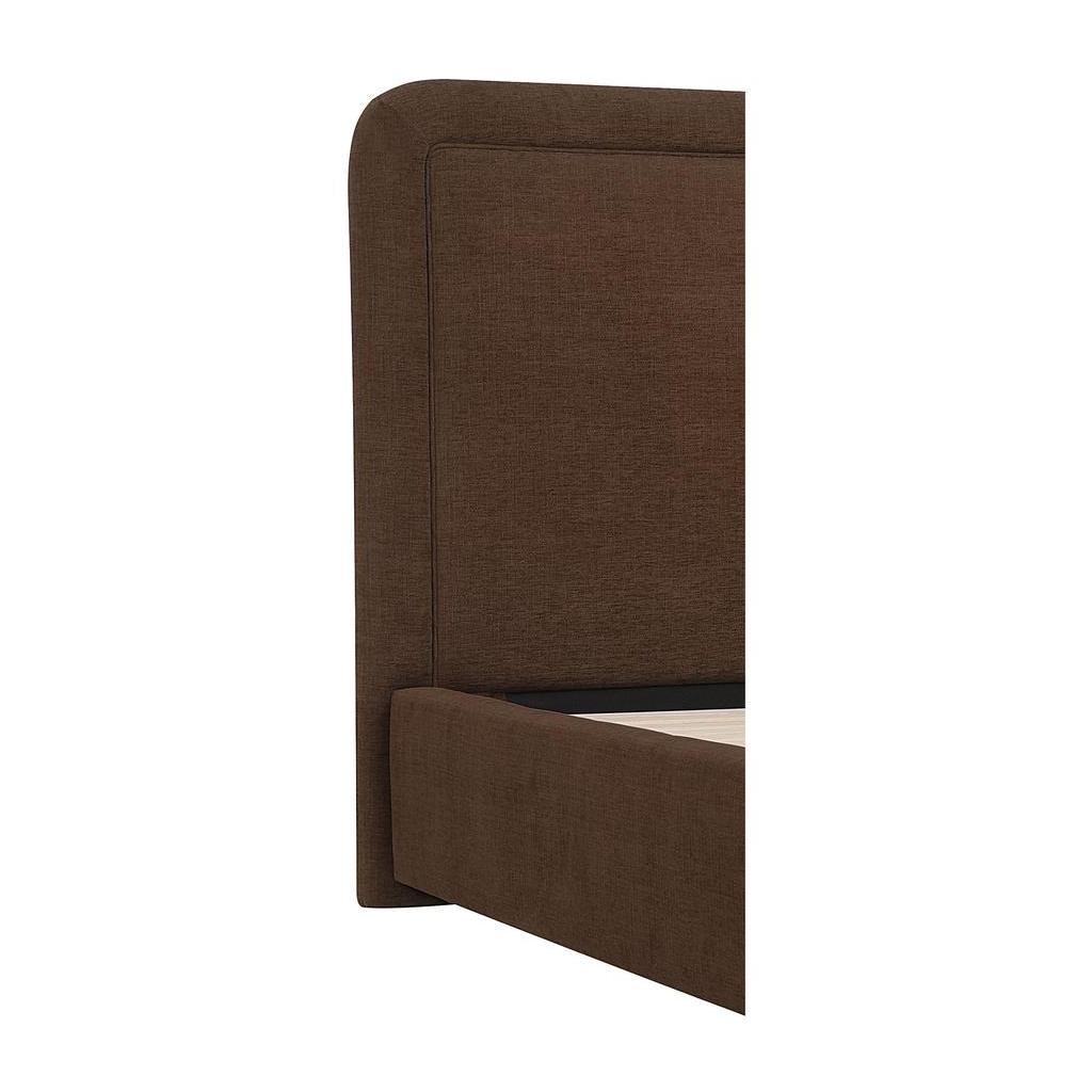 A bed with a hidden trick. The Simon Bed features a rounded silhouette with piped detailing, upholstered in brown polyester for warmth and durability. The full footboard pulls forward to reveal storage divided into two panels, keeping essentials organized without clutter. Built with engineered wood, solid wood, and MDF, Simon turns practical storage into part of the design story.