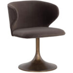 Create a captivating dining space with this eye-catching swivel dining chair that has a contemporary flair. Stocked in casablanca cloud performance fabric and completed with a round, antique brass stainless steel base. Performance fabric is moisture repellent, durable and easy to clean.