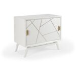 Unique revolving door drinks cabinet. White painted exterior, blue interior. Polished brass inlay on door panel and hardware. Available in black with red interior – 490477
