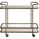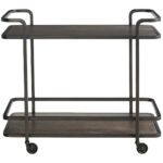 The Smoked Bronze Bar Cart brings a touch of industrial chic to your entertaining space. Its sleek, metal frame and smoked bronze finish create a sophisticated and mobile serving station, perfect for hosting gatherings or adding a touch of vintage flair to your décor.