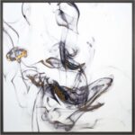 A sultry black and white image printed on acrylic from our Luxe Art collection. This print features smoky black plumes that flow off the white background. A final touch of hand applied gold leaf completes the look. Finished with a charcoal wood floater frame. Due to the reflective nature of acrylic and gold leaf, images on site may not capture the artisanal characteristics precisely. Hand-finished items will vary from piece to piece, resulting in a truly one-of-a-kind artwork.
