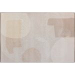 A neutral palette of earthy pinks and beiges in organic shapes evoke a sense of intrigue in this contemporary art piece. Printed on canvas with white textured detailing to add definition to the artwork. Features a light brown wood floater frame.