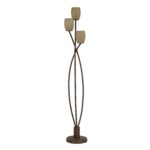Delivering light and style through its curvaceous lines, this beautiful floor lamp is the perfect touch in any traditional space. Designed with a gold and copper bronze-finished body, and three amber glass shades, it helps shed a warm and welcoming glow in any room.