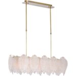 Stunning adjustable chandelier with individually applied glass leaves. Eight lights