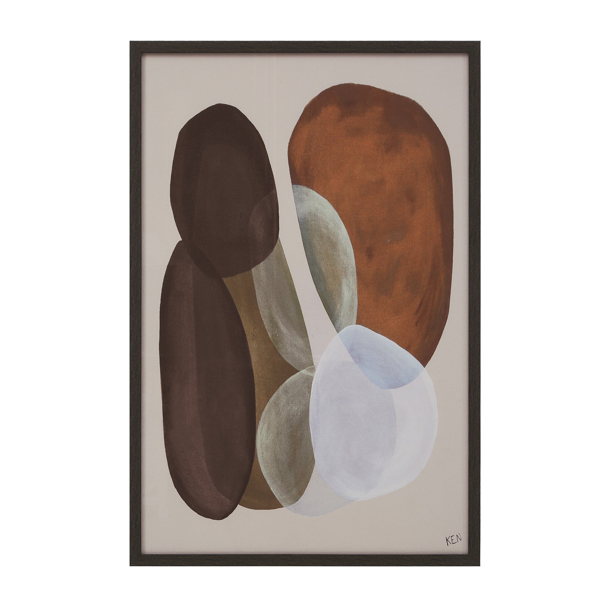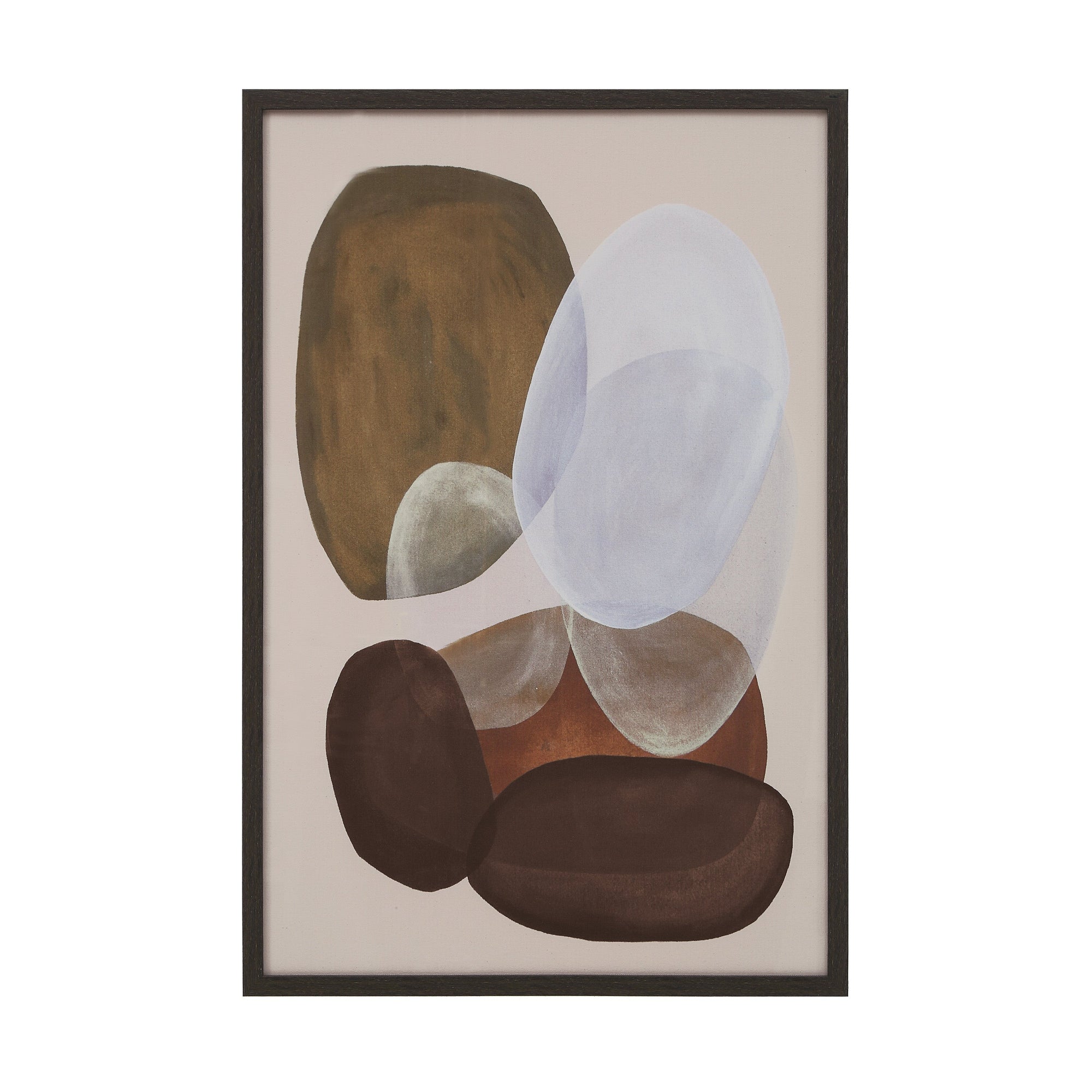 Featuring a rich palette of brown, beige, white, and black, the Sole set of two prints explores organic shapes with a sense of depth and light. Housed in dark wood floating frames under glass, these pieces deliver a contemporary, polished look, adding subtle sophistication and modern elegance to any interior.