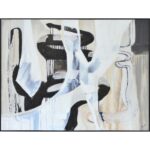 The minimal interior benefits from a pop of personality when this cotton canvas is set on the wall. The blend of textured painting, completed by hand, and print input, coupled with the squiggles and stripes, gives this design a street art feel. A thin black frame keeps the intricacy of the piece contained.