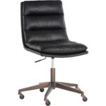 Work in maximum comfort with this mid-century modern office chair that features a generously-padded backrest. Stocked in bravo cognac faux leather. Completed with an antique brass steel base with added castors for mobility.