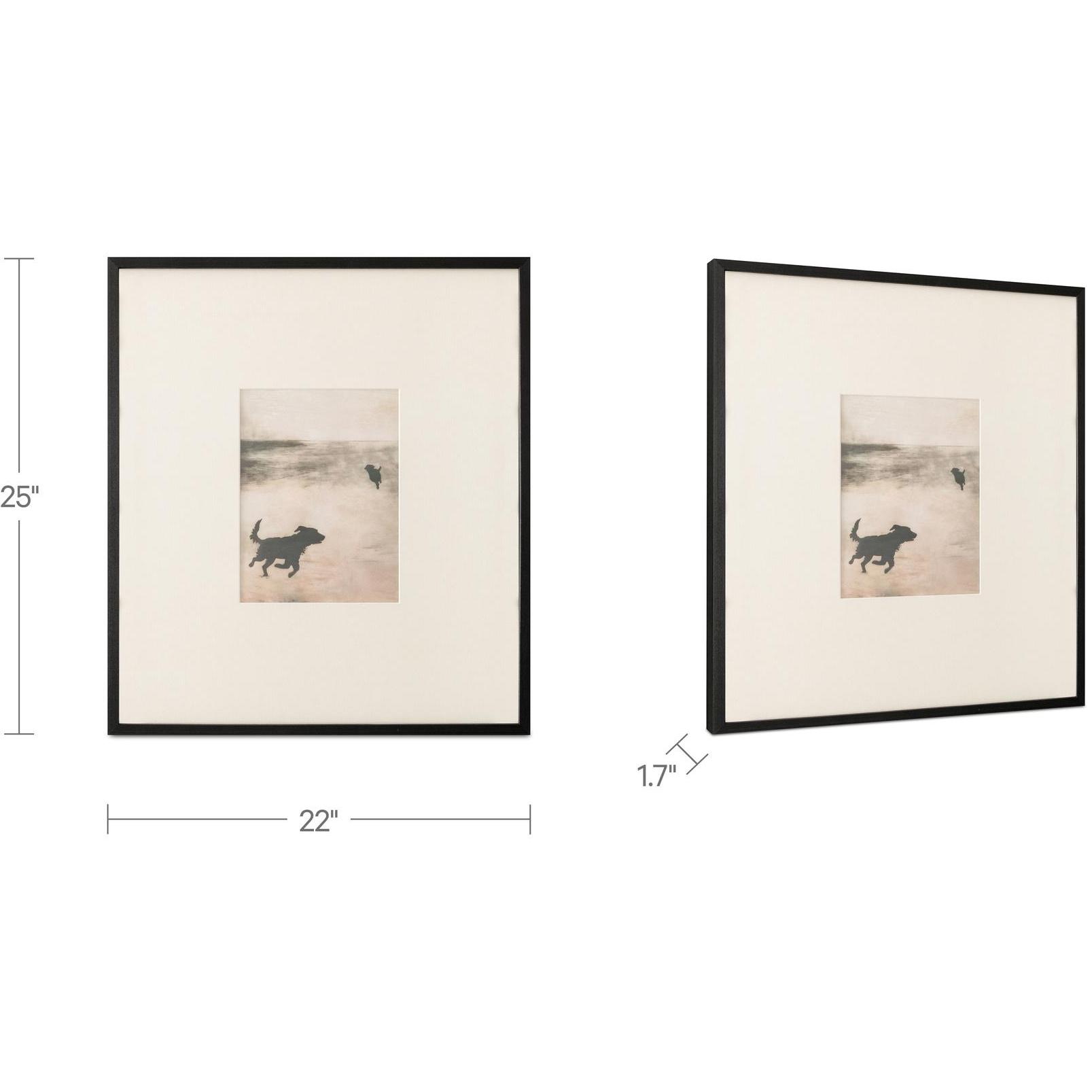 The Strand 2 framed print embraces coastal serenity. Inspired by Ireland’s misty shores, this evocative piece captures the essence of dogs roaming freely along endless sand. The print’s earthy tones complement the solid wood frame and textured matte border.