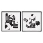 Retro-inspired graphic design gets a refined makeover in this set of two wall art frames. These framed collage pieces add charm to the mid-century modern or contemporary interior while retaining a subtlety that allows the space to maintain a sense of calm. Arranged within a gallery wall, side by side, vertically stacked or across the room from one another, each design perfectly complements and contrasts to the other.