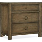 - Finish: Cliffside: a rich, dynamic brown finish with light burnishing on the edges. Distressing includes sandblasting, drawknife and wormholes. Antique bronze ring and knob pulls.