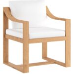With a clean and modern design, this dining armchair is a fabulous addition to any outdoor space. Stocked in stinson white fabric and completed with a solid teak wood base in natural. Part of the Outdoor by SUNPAN collection. Suitable for indoor and covered outdoor spaces.