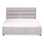 Modern and minimal. The Takio bed is softly upholstered in light grey polyester fabric for a soothing feel before you drift off to dreamland. Lightly stuffed and tufted on top of a solid wood construction for ultimate comfort.