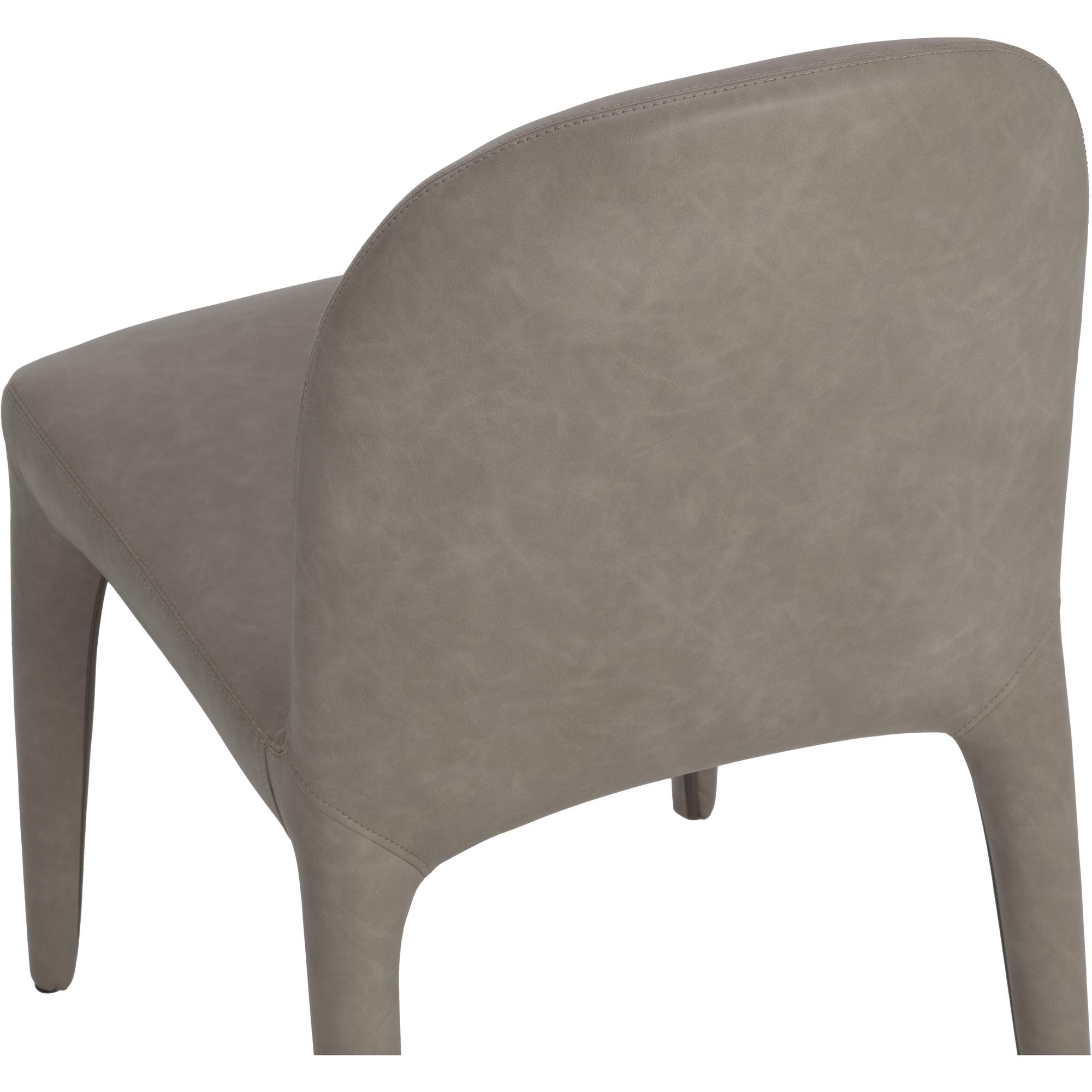 The Tamina Dining Chair is defined by its tonal silhouette, fully wrapped in ivanhoe mineral faux leather for a seamless, sculptural look. Its gently rounded back and smooth curves bring a sense of softness to the design, while the faux leather introduces a distinct texture that enhances its contemporary appeal.