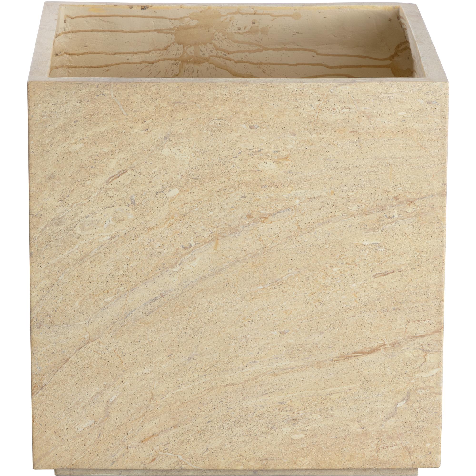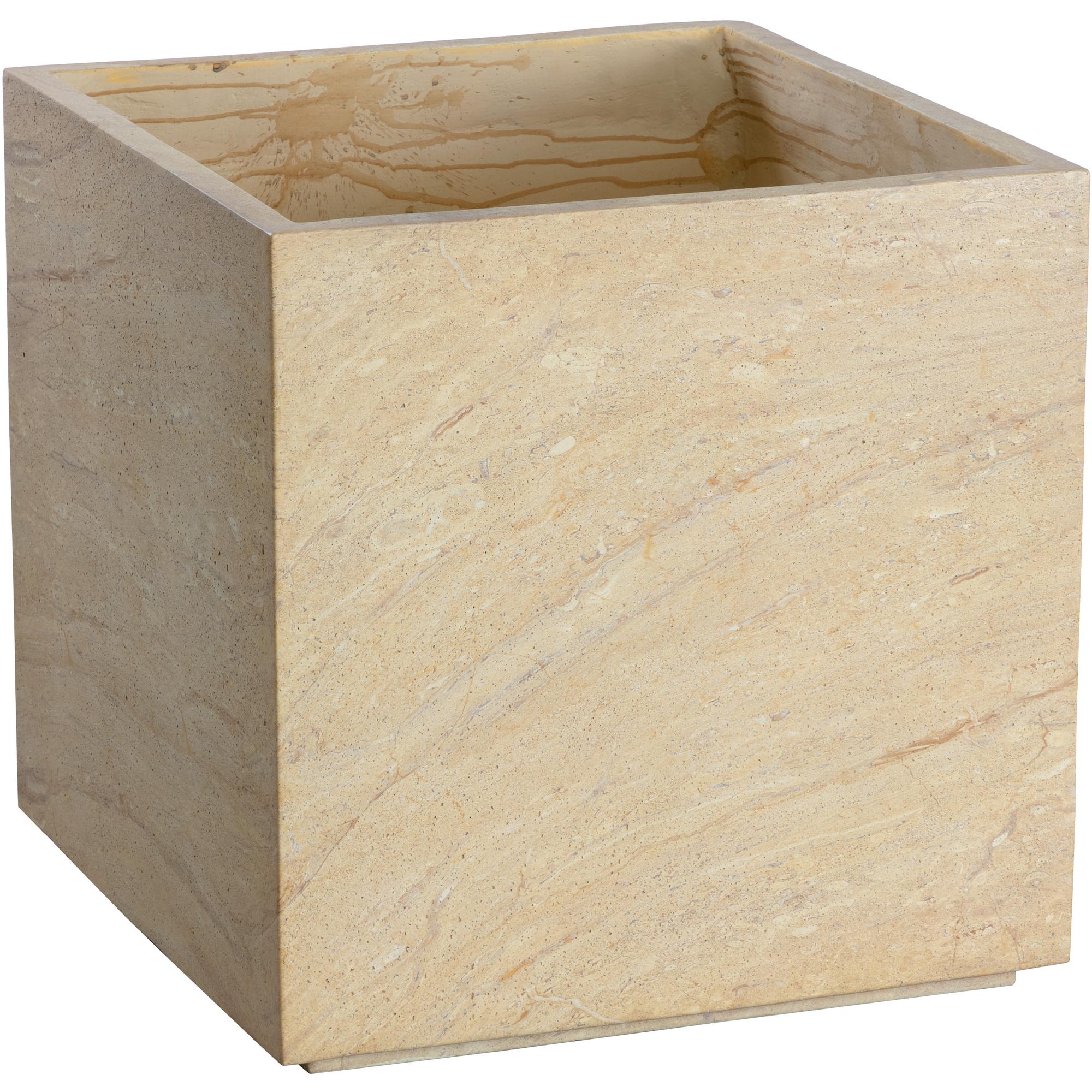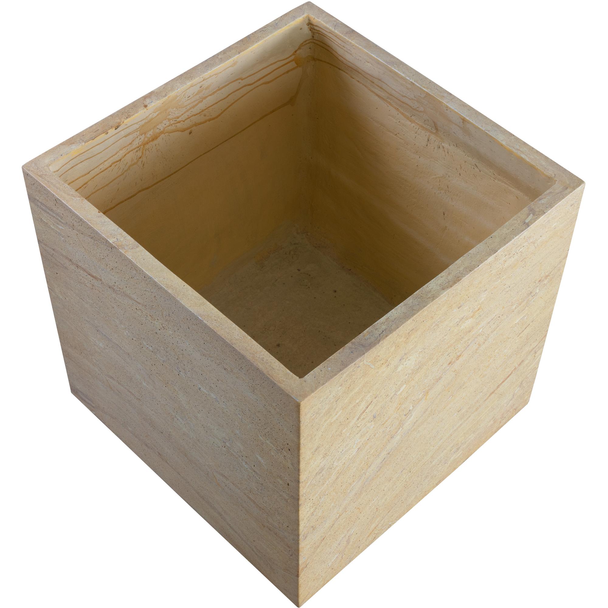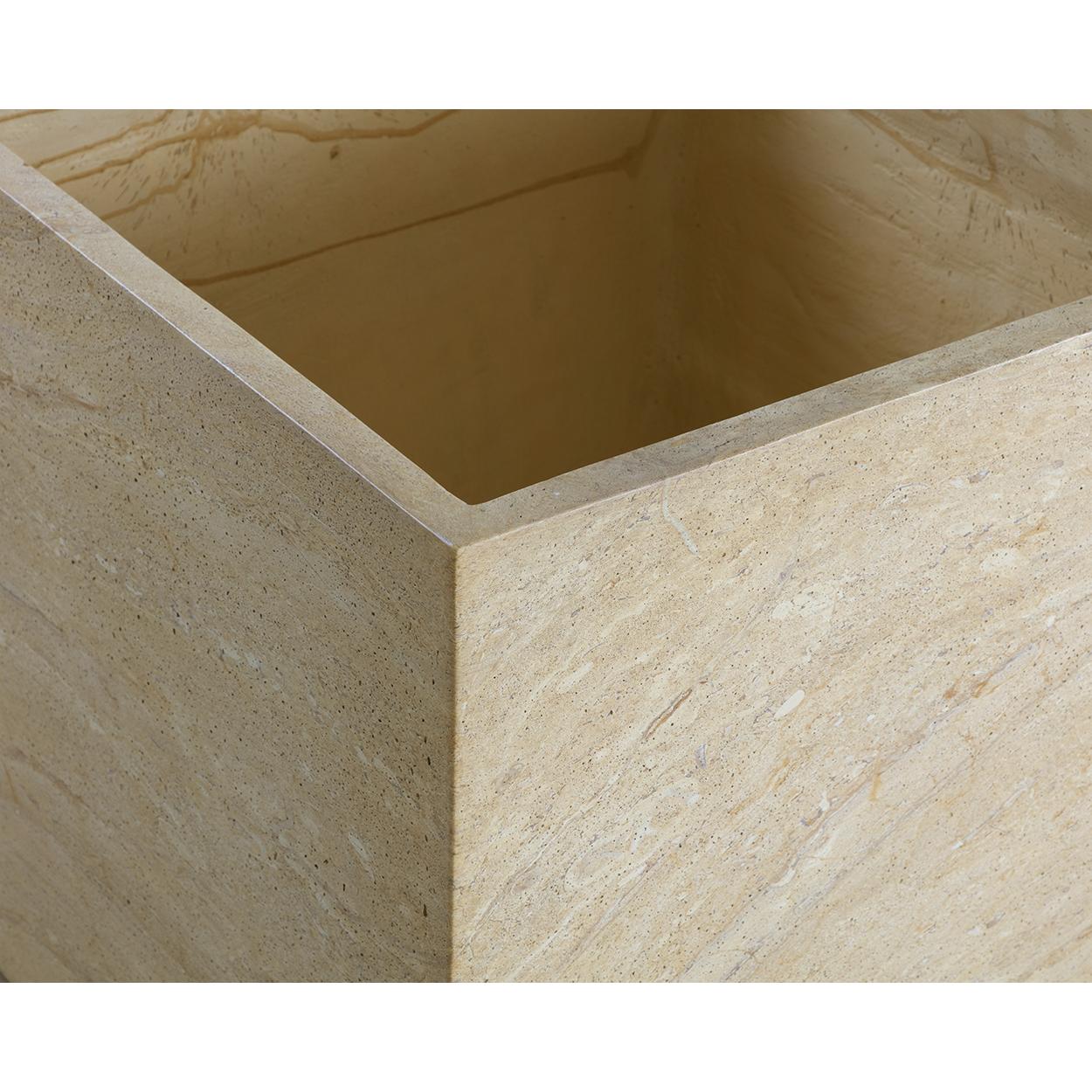 The contemporary form of the square Leilani Planter allows for a lush display of botanicals that will complement any decor. Constructed from glass fibre-reinforced concrete for increased durability with a protective sealant finish that allows it to withstand the elements. Designed to resemble the look of natural travertine, this beautiful planter will be a welcome addition to large spaces such as hotel lobbies or building entrances. Includes holes for drainage, one step, and a removable shelf insert. Suitable for indoor and outdoor covered spaces.