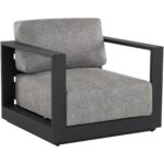 Cherish the outdoors with this modern armchair from the Outdoor by SUNPAN collection that offers a comfortable and laid-back style. Stocked in stinson white fabric and completed with a powder-coated greige aluminum frame.