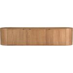 Full of natural appeal in solid oak, the Theo media bench features a curved, minimalist design adaptive to modern homes and contemporary lifestyles. Design-forward and functional, 3 doors open to 3 spacious interior shelves.