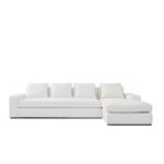 The Thomas sectional offers an expansive 125 inches of seating in durable C0 100% polyester fabric. An oversized structure, wide track arm, and bench-style seat topped with a 70% feather blend ensure even comfort. Featuring removable back cushions and even channeling within the seat to ensure its feathers stay evenly distributed, it is perfect for family living.