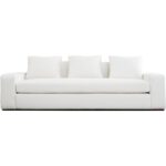 - Oversized with wide track arms, bench seat, three removable & reversible back cushions, with even channeling within the seat to ensure feathers stay evenly distributed