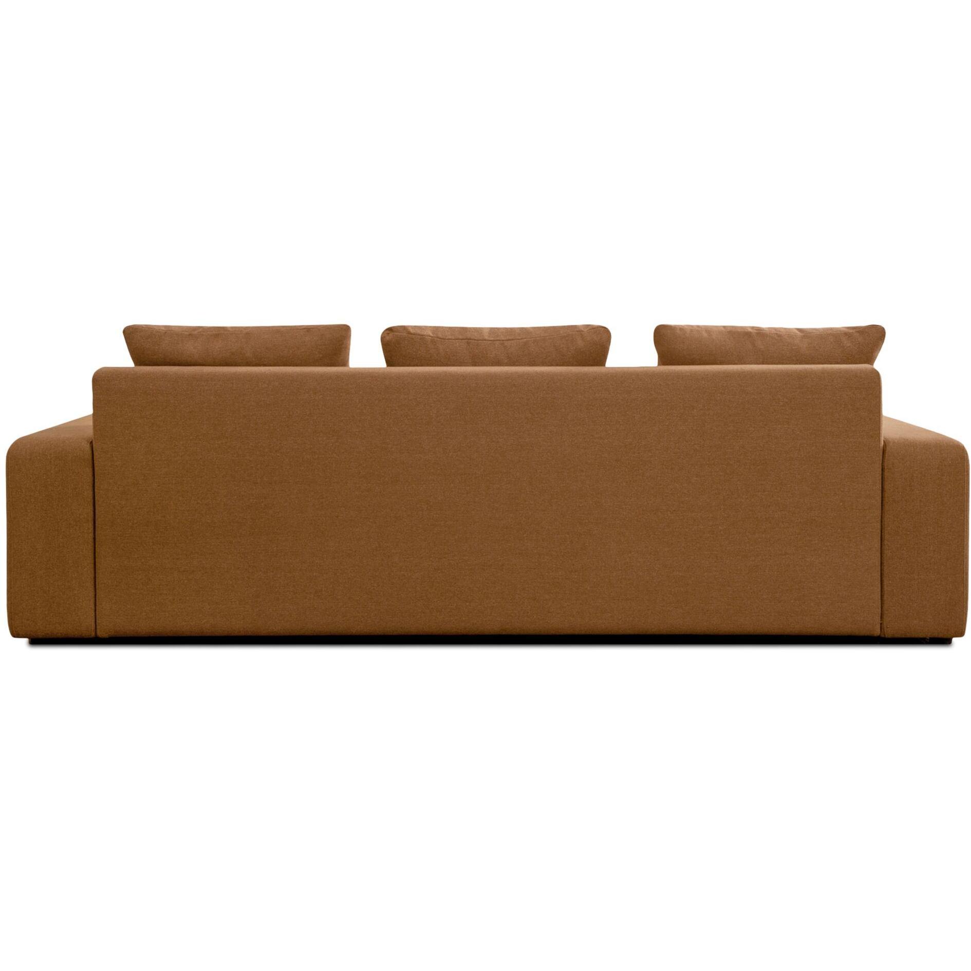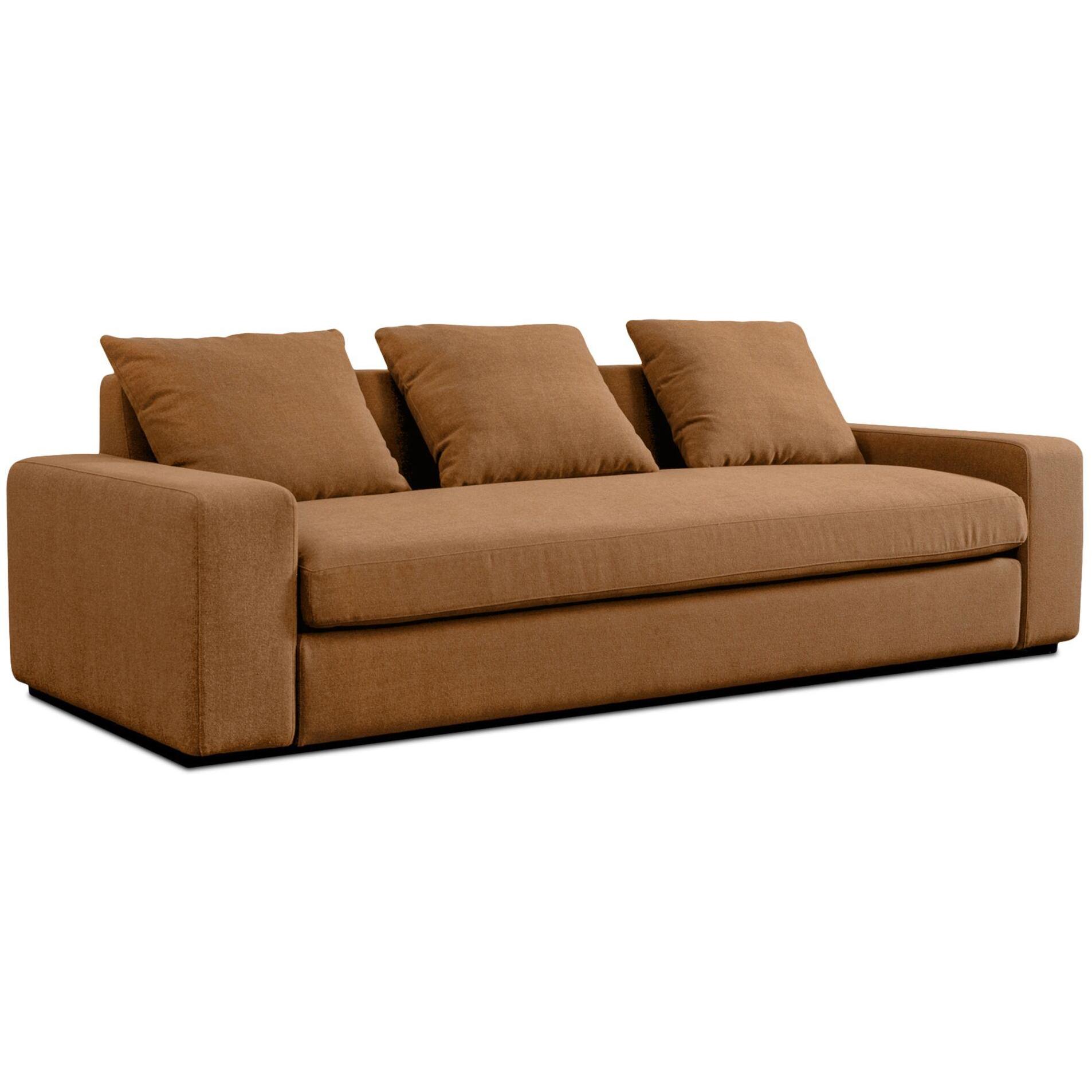 - Oversized with wide track arms, bench seat, three removable & reversible back cushions, with even channeling within the seat to ensure feathers stay evenly distributed