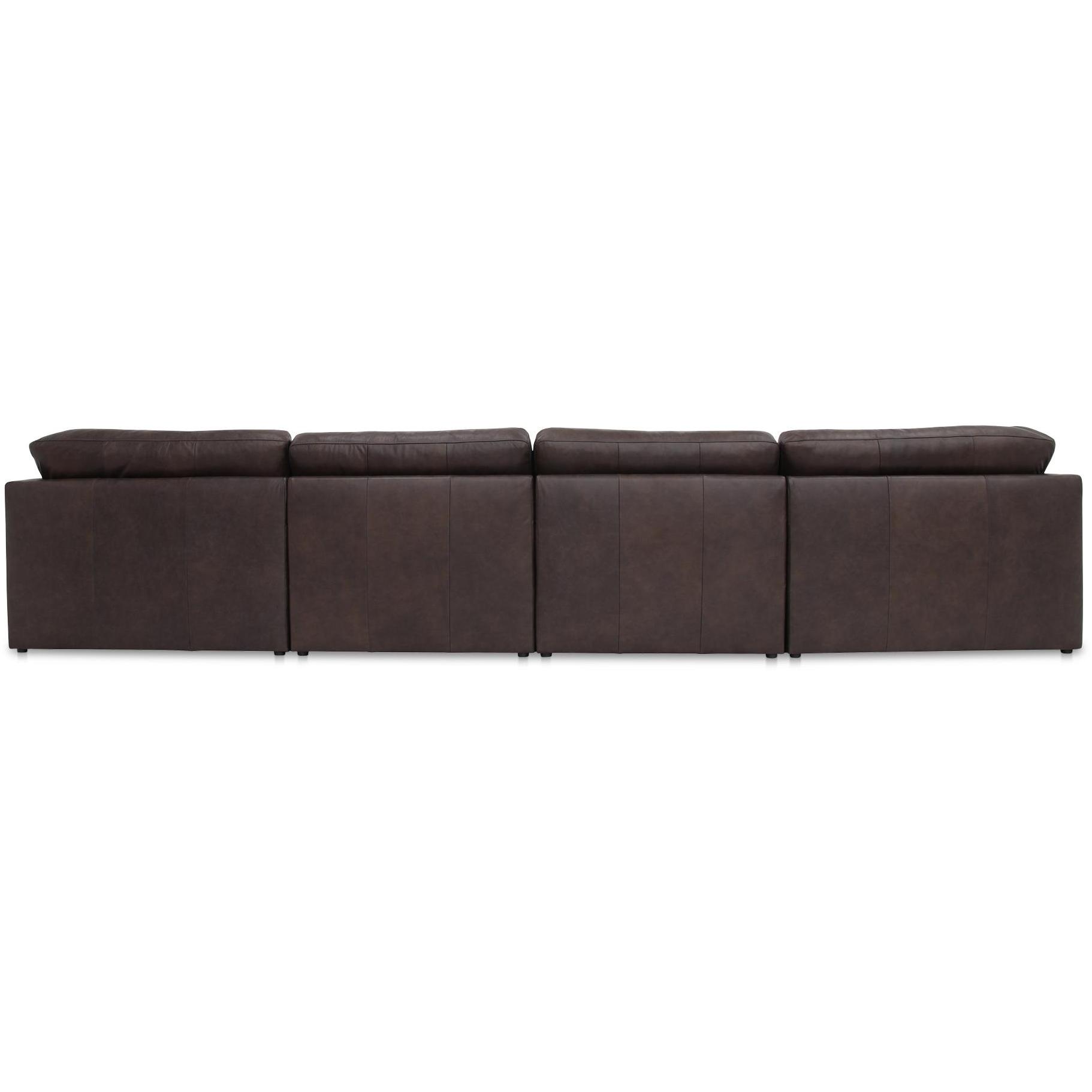 The Thurlow modular sectional collection features sophisticated sloped arms and a tufted back that lends a traditional touch, while its generous proportions and rich espresso hue elegantly balance versatile modernity. Wrapped in top-grain leather, each piece offers plush comfort through unexpected feather and fiber fillings atop high-density foam.