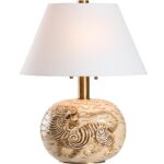 Infuse your space with bold character and cultural flair with the Tibetan Tiger Lamp. Featuring a sculpted ceramic body adorned with a striking tiger motif, this lamp celebrates traditional artistry with a modern twist. The warm, glazed finish pairs beautifully with antique brass accents and a soft white tapered shade, making it a captivating focal point for any room.