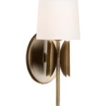 The Tilling Sconce is comprised of a dynamic array of antique brass fins. Topped with a refined, rolled-edge linen shade, this sconce combines the best of material, texture and form to create a dramatic and sculptural statement.