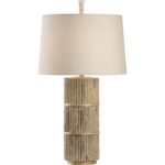 Whitewashed cast composite bamboo column with antique brass finished accents