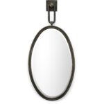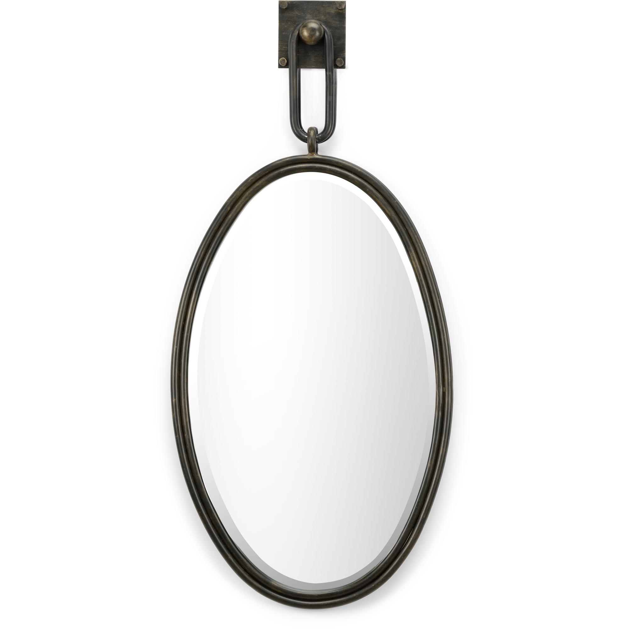 Open up your space while adding style with Tobago Mirror. This large oval mirror features an antiqued bronze finish on a iron frame. This modern contemporary design is suspended from a square wall hook for added dimension. Worthy of its own space, hang this beveled mirror on a wall in your home to reflect your decorative aesthetic. (Available in other sizes and finishes)