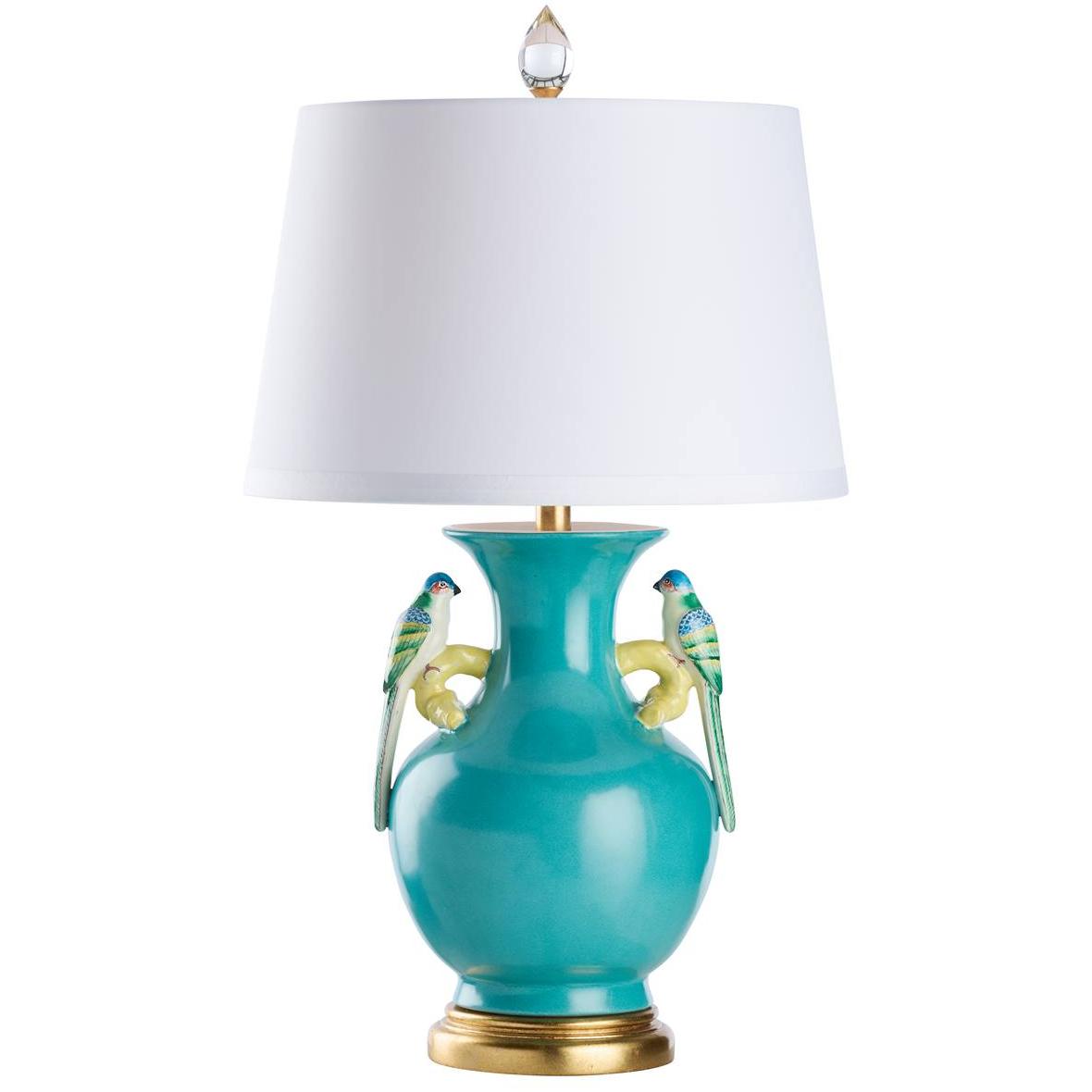 Handpainted blue glazed porcelain with antique gold leaf finish on composite mounting