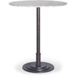 The Tori outdoor bar table creates a curated experience of lingering conversations and shared moments as unique white marble, with its natural veining, crowns a refined cast aluminum base. Three cascading circular tiers create an intriguing silhouette, while a cylindrical detail lightly punctuates this versatile outdoor safe piece.