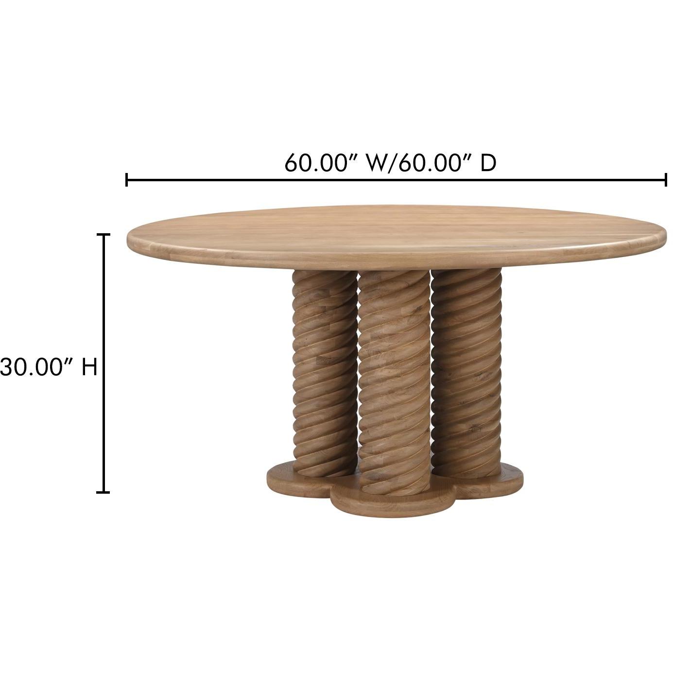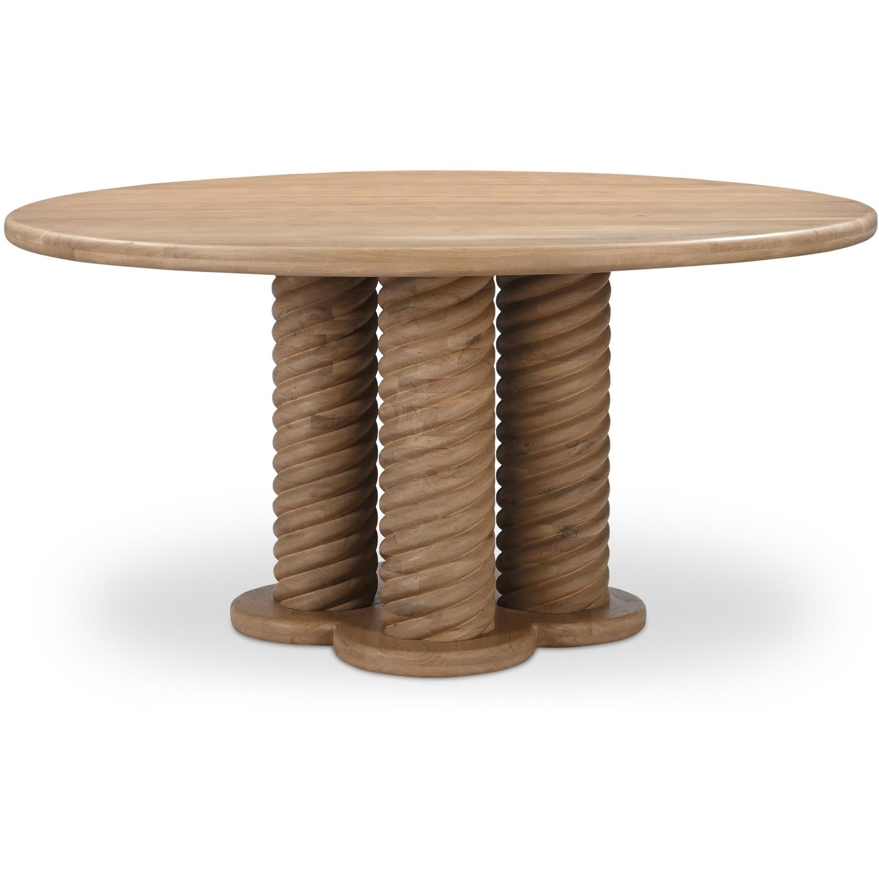 The Treccia dining table is a contemporary reimagining of traditional aesthetics through turned and braided design details. This table showcases exaggerated, intricate detailing on its pedestal base, infusing it with a modern boldness while maintaining functional elegance. The pedestal style is visually striking and exceptionally practical, offering unobstructed space for comfortable seating and effortless conversation.