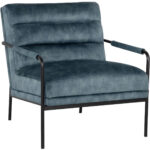 The perfect statement lounge chair chair that will add a mid-century modern vibe to any space. Stocked in nono cream fabric on the interior and an accenting nono dark green fabric on the exterior. Includes acacia wood armrests and completed with a black metal frame. Also available in nono petrol fabric.