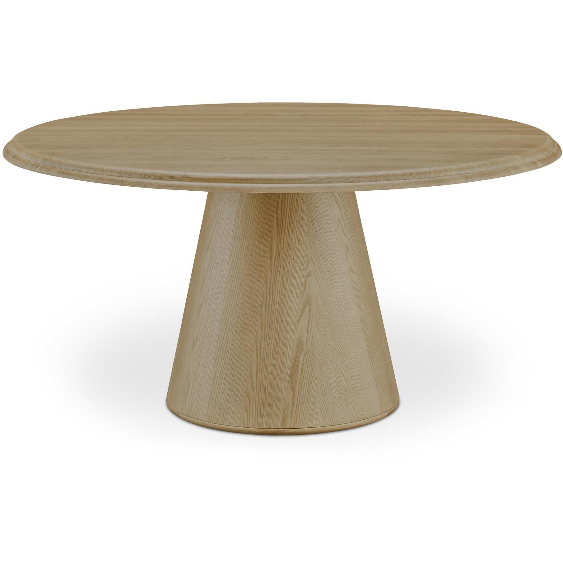 The Tutto dining table features an elegant pedestal base designed for comfort and fluid conversation. Showcasing a delicately cascading double bullnose detail, it radiates contemporary grace and subtle charm. Crafted in rich, warmer woods, this piece nods to the heritage of mid-century Italian design, evoking the feel of a serendipitous vintage find.