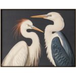 The Two Cranes painting weaves the elegance of the 1920s with its Art Deco inspiration. Acrylic on canvas breathes life into the majestic cranes, set against a backdrop of deep, expressive tones where dark meets light, offering a sophisticated narrative of beauty and heritage.