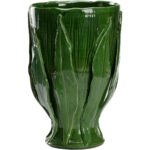 A touch of rustic decor with a hand thrown Italian ceramic vase with a rich glaze. The softness of the climbing leaves brings texture and dimensions to the Umbria Footed Vase in green.