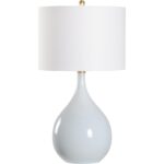 The modest shape of the Underhill Lamp perfectly complements its surroundings, adding simplicity with its blue ceramic glaze finish, brass details and a classic white shade. Designed by Bill Cain.