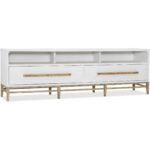 Center media opening: 26 1/2W x 17 1/4D x 7H - Material: Maple and White Oak Veneers and Aluminum Sheet