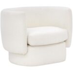 Evoke a stylish flair with this curved, contemporary armchair. Features a capsule shaped frame in maya white fabric. Maya fabric features a boucle texture. Eye-catching from all angles. Coordinating sofa also available.