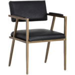 Industrial meets transitional elegance in this armchair. Reminiscent of mid-century modern styling with a rustic bronze steel frame and beige linen fabric on the seat and seat back. Can be used in both dining and living spaces.