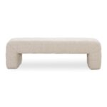 The Verity bench features a plump form enveloped in soft, flecked textured upholstery with warm tones for a touch of elegance. Wide channel detailing adds texture and visual interest, complemented by rich, warm tones that tell a story of comfort and coziness as the high-density foam seat provides a plush seating experience.