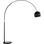 With a sweeping arc, this bold lamp will define living, lounge and office spaces with style. Features a globe shade in brass iron with a white marble base. As marble is a natural material, unique veining, pitting, fissures, micro-cracks and colour variations are all characteristics that add to the uniqueness and beauty of each piece.