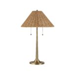 Boasting a timeless aesthetic, this classic table lamp marries natural rattan and dark antique brushed brass to deliver a transitional touch to any space. Its woven shade softly filters light for an ambient glow while its richly patinaed body warms up the room with old-world charm. Include one or a pair in your decorating scheme for an instantly adored update.
