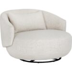 Boasting a beautiful, curvaceous shape, this swivel lounge chair is both contemporary and effortlessly trendy. Stocked in effie linen and smoke fabrics, and completed with a black powder coated steel base.
