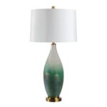 Featuring a rich green glaze and brushed bronze details, this table lamp is an easy way to add an earthy yet sophisticated touch to any interior. Crafted from ceramic with an off-white faux silk drum shade for a soft glow, it brings a classic look to a living room, bedroom, dining room or hallway.