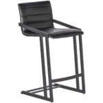 An industrial chic counter stool. Features horizontal channel tufting on the seatback with an exposed black steel frame. Stocked in cantina black bonded leather. Suitable for various dining, kitchen and bar spaces of all sizes.