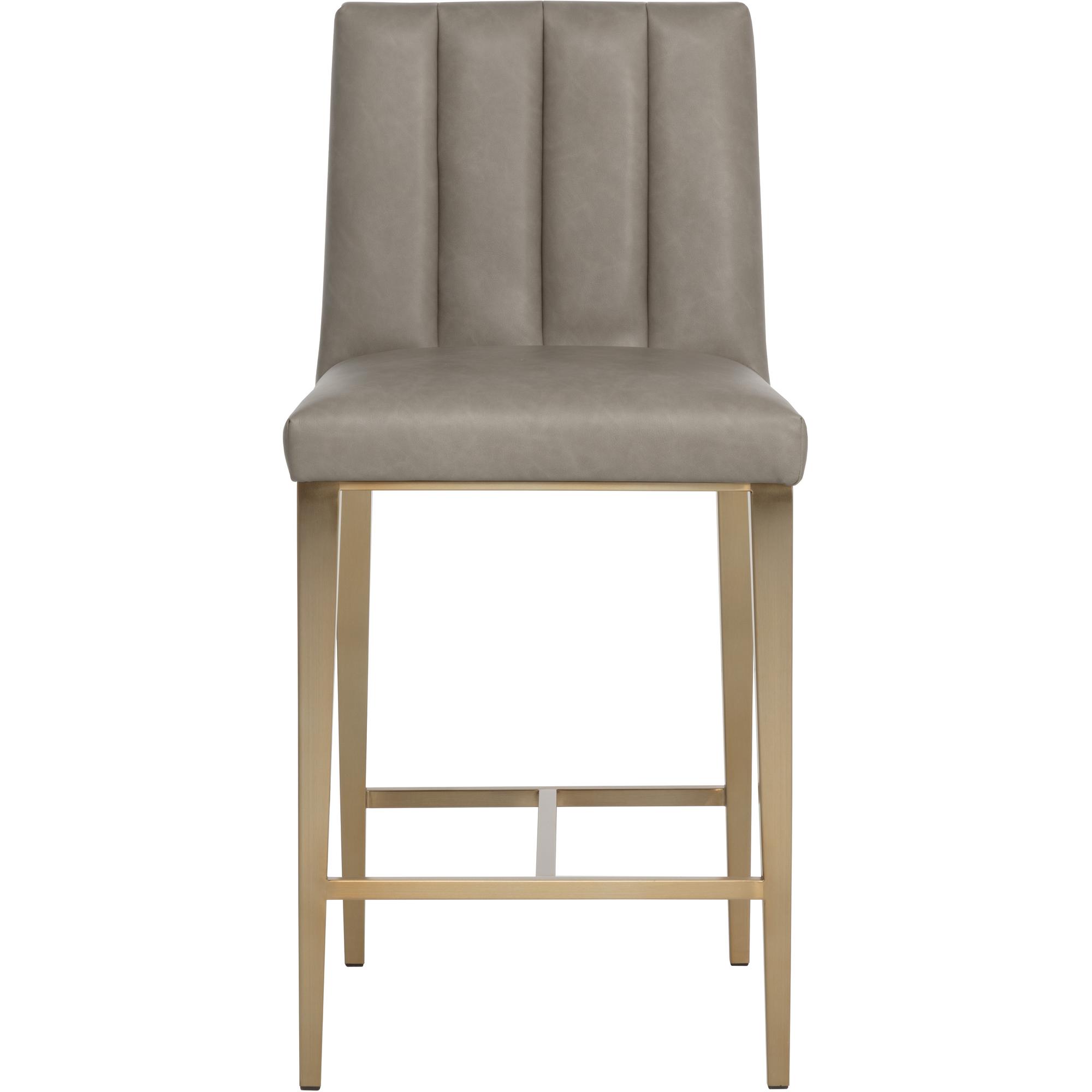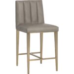 Minimal and classic best describes the Wilbur Counter Stool. Upholstered in ivanhoe mineral faux leather with vertical channeling on the back seat for added flair. Finished with powder-coated stainless steel legs and a matching decorative handle.