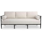 Classic lines, made for the outdoors, scaled for three. The Willow Sofa pairs a crisscross X-frame with cylindrical joinery and tapered legs in a cream finish. Upholstered in recycled performance fabric, it’s supported by quick-dry foam cushions, fiber fill, and PVC webbing suspension for outdoor-ready comfort. Two bolster pillows add versatility. With crafted detailing and smart materials, Willow turns a traditional silhouette into a practical outdoor staple.