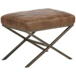 This handsome stool combines Old English flair with mid-century style. Features a double-stitched diamond pattern on the seat with an antique brass steel x-base. Stocked in our bravo cream, havana dark brown and tobacco tan faux leather. Handle With Care: This design has been crafted with faux leather. Faux leather is manufactured to reflect the natural characteristics of leather; as such, colour variations, markings, wrinkles, grooves, and light scratches are appreciated characteristics. No two pieces will be alike.