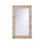 The Zara Mirror is a captivating piece that seamlessly blends artistry with functionality. Crafted from high-quality wood inlay with white detailing, this mirror showcases a stunning floral design that adds depth and character to any wall. The rich textures and natural grains of the wood bring warmth and elegance, making it an ideal accent for both modern and traditional interiors.
