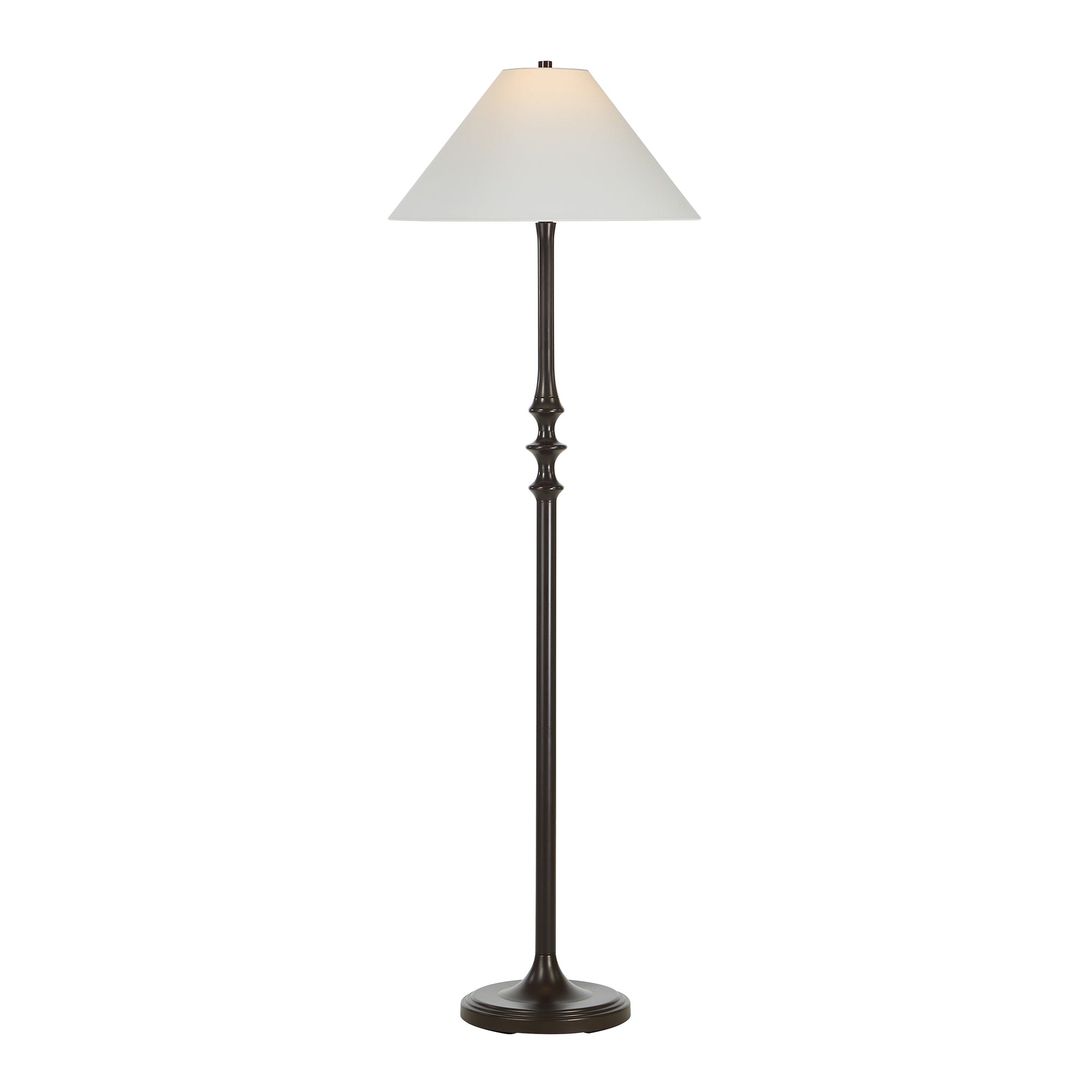 Designed to complement everything from modern to transitional decor, the Zyra floor lamp brings effortless style to any room. Its streamlined iron base is finished in a matte dark bronze that pairs beautifully with a clean off-white linen drum shade. The result is a versatile look that’s perfect for showcasing your classic design sense.